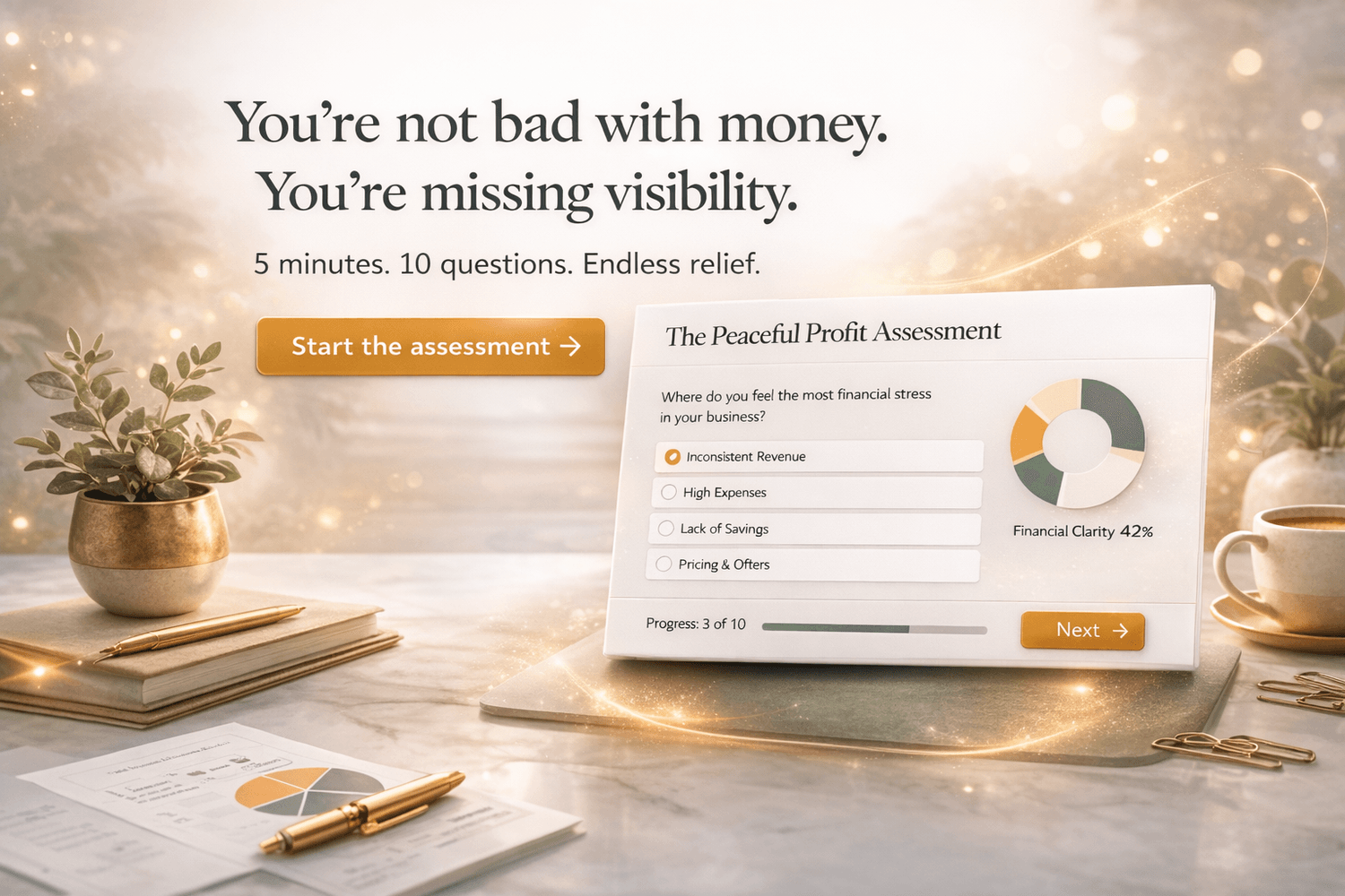 The Peaceful Profit Assessment⢠shows you the EXACT source of your financial overwhelm - and the simplest, most powerful path to clarity.